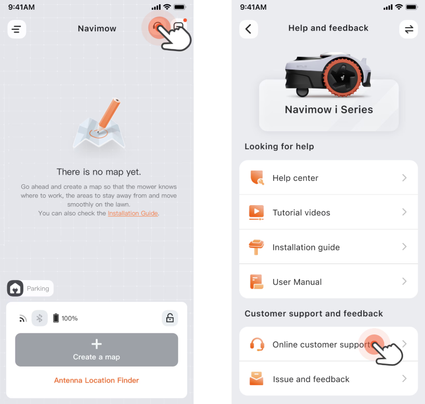 The updates are done! You can now experience the latest features of Navimow i Series, a brand-new series of the Navimow robotic mowers. If you encounter any problem, you can contact us via Live Chat by tapping the 'Online customer support' icon from the home page.