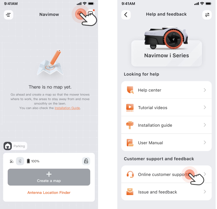 The updates are done! You can now experience the latest features of Navimow i Series, a brand-new series of Navimow robotic mowers. If you encounter any problem, you can contact us via Live Chat by tapping the 'Online customer support' icon from the home page.